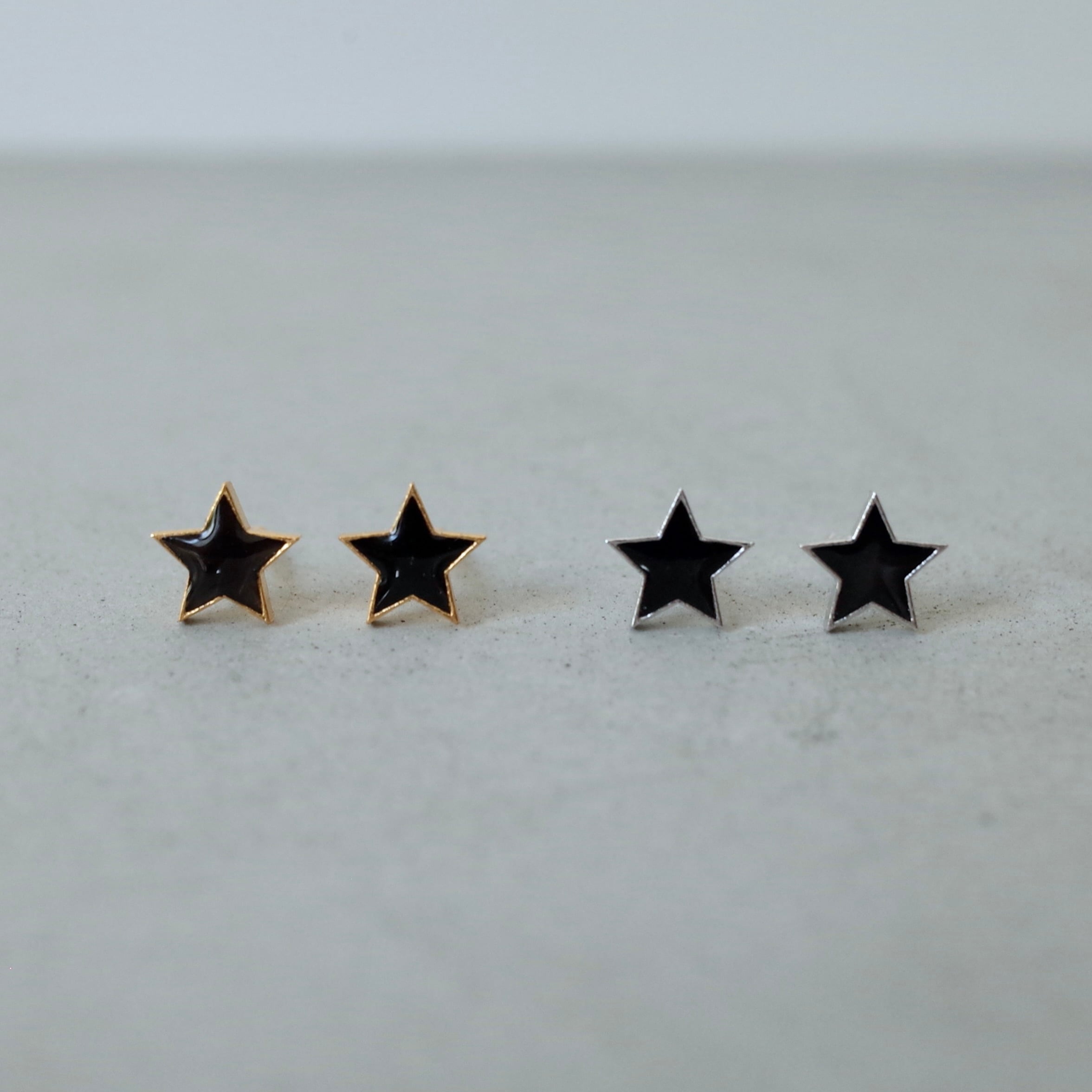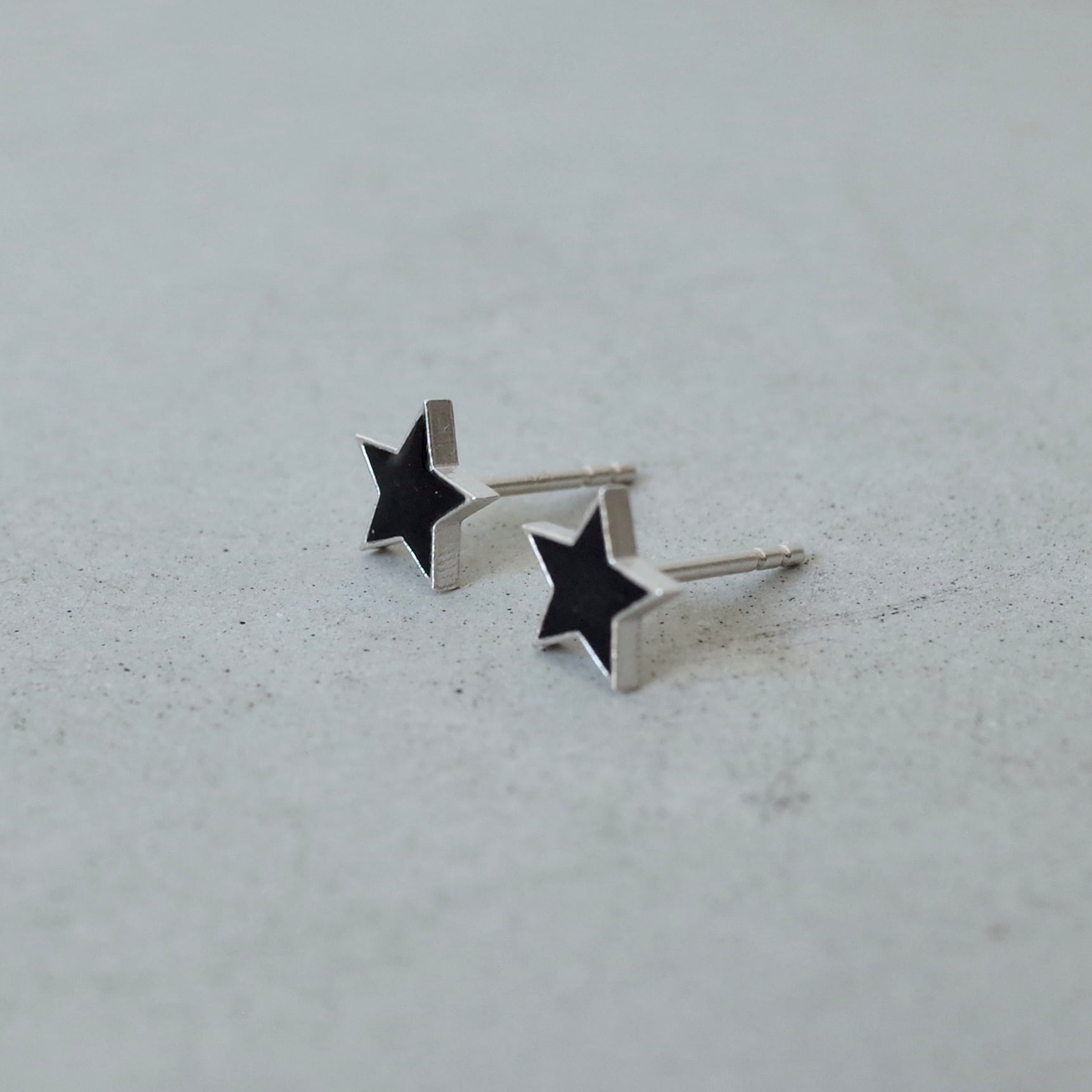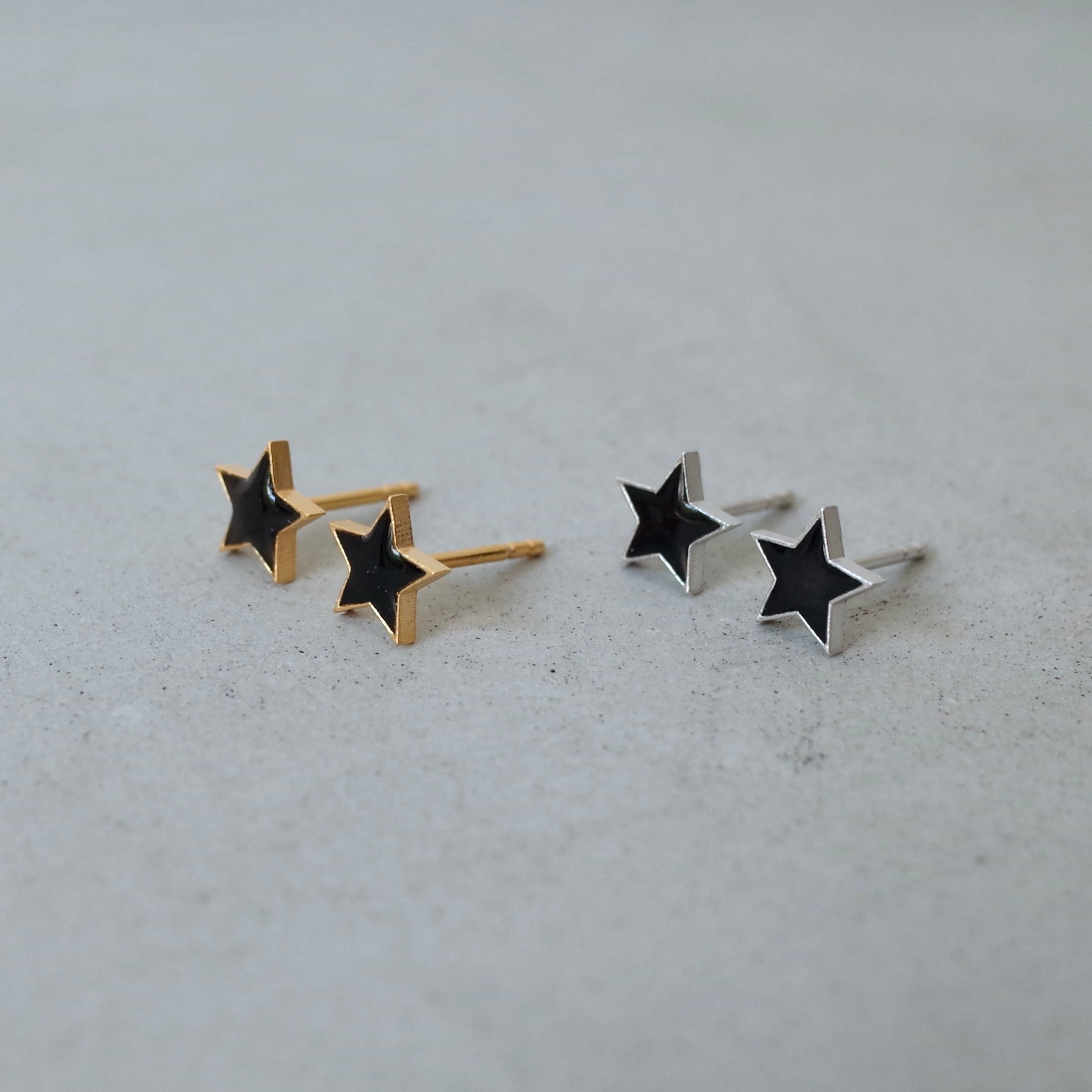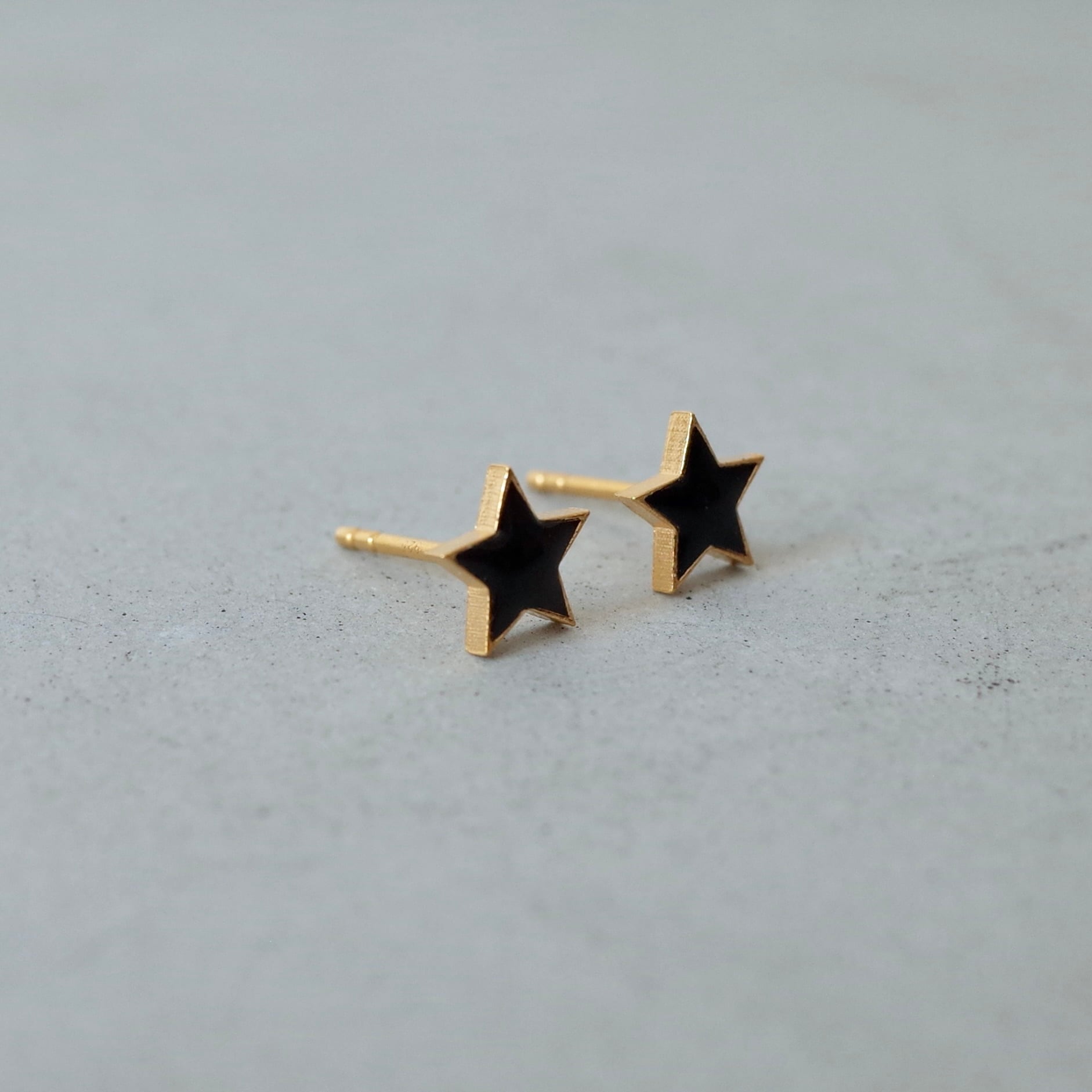 星モチーフの中に黒い樹脂を流し込んだ、遊び心のある小さなピアス。