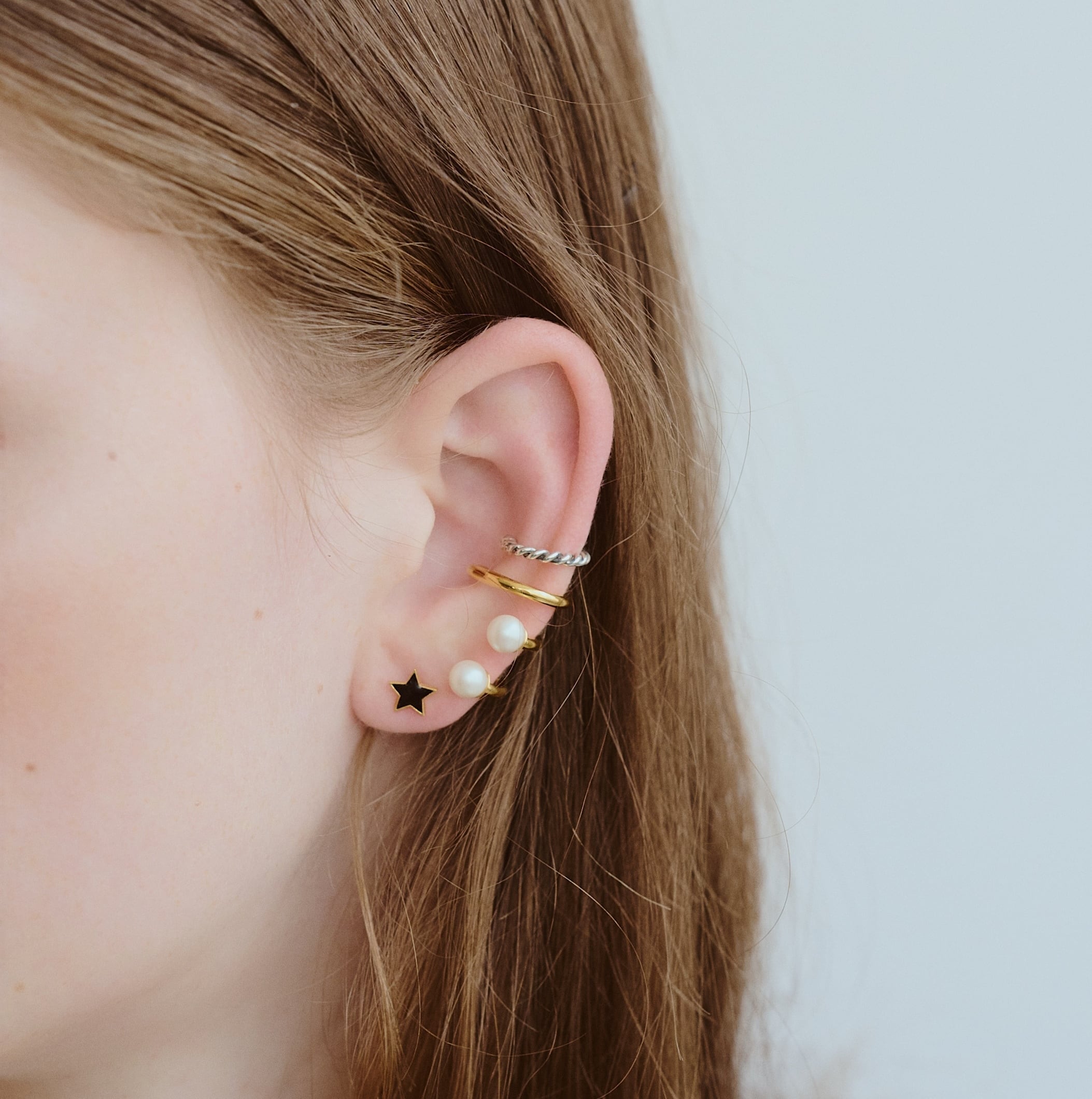 シルバー925の光沢と黒のコントラストが、耳元にさりげないアクセントを添えてくれます。