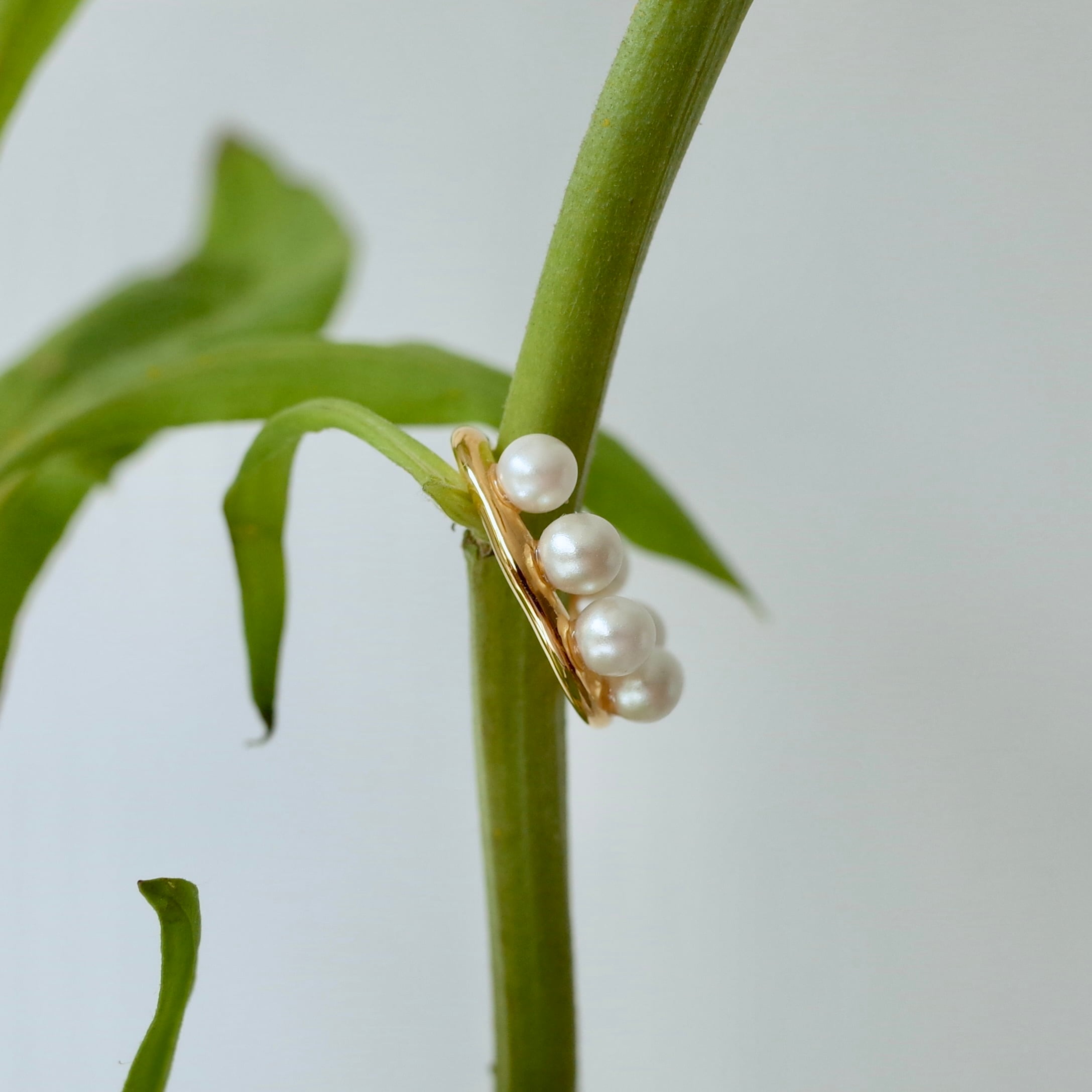 Its form gently hugs the ear, while the soft luster of the petite pearls creates a striking design.