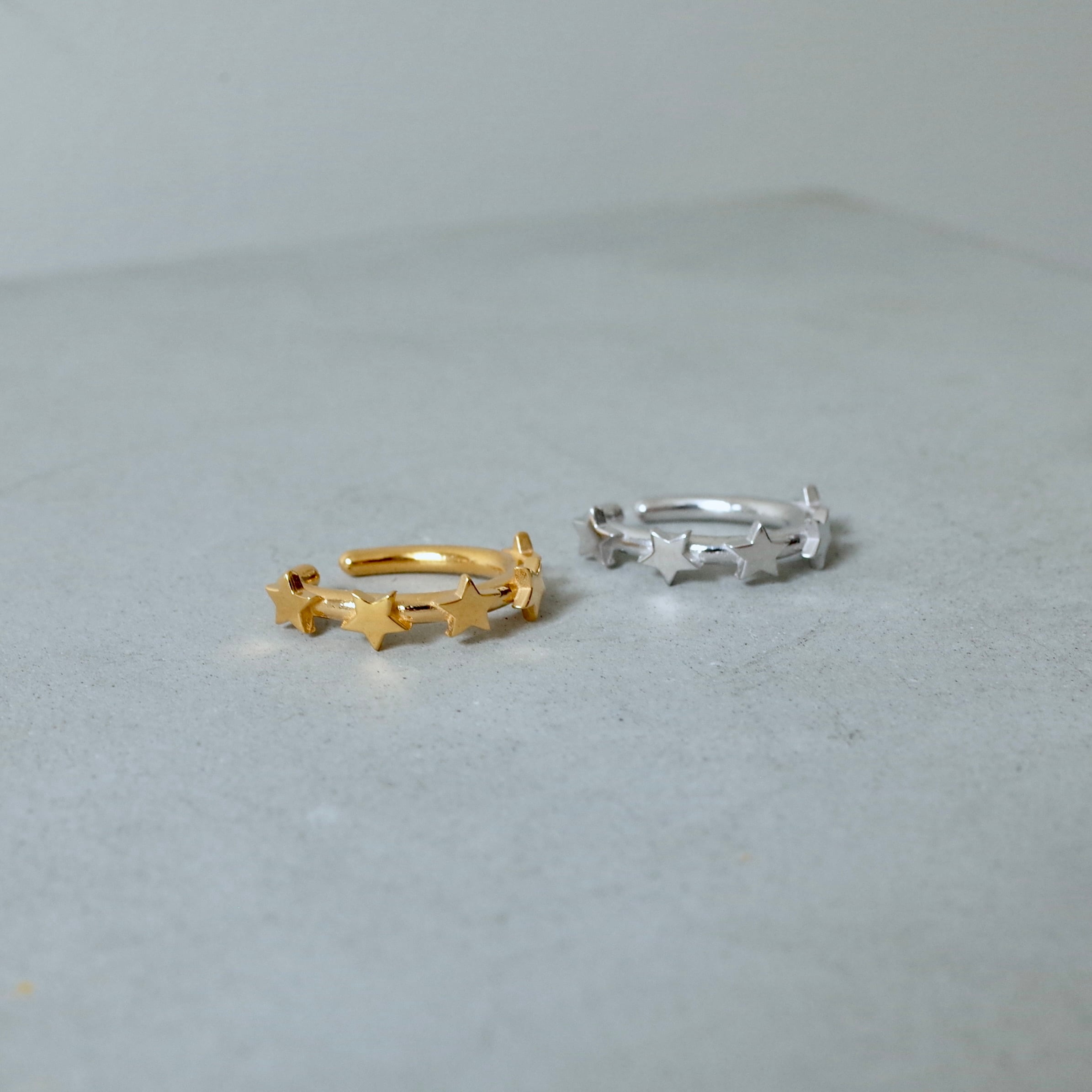 夜空にきらめく星たちをそのまま並べたような、遊び心のあるイヤーカフ。
