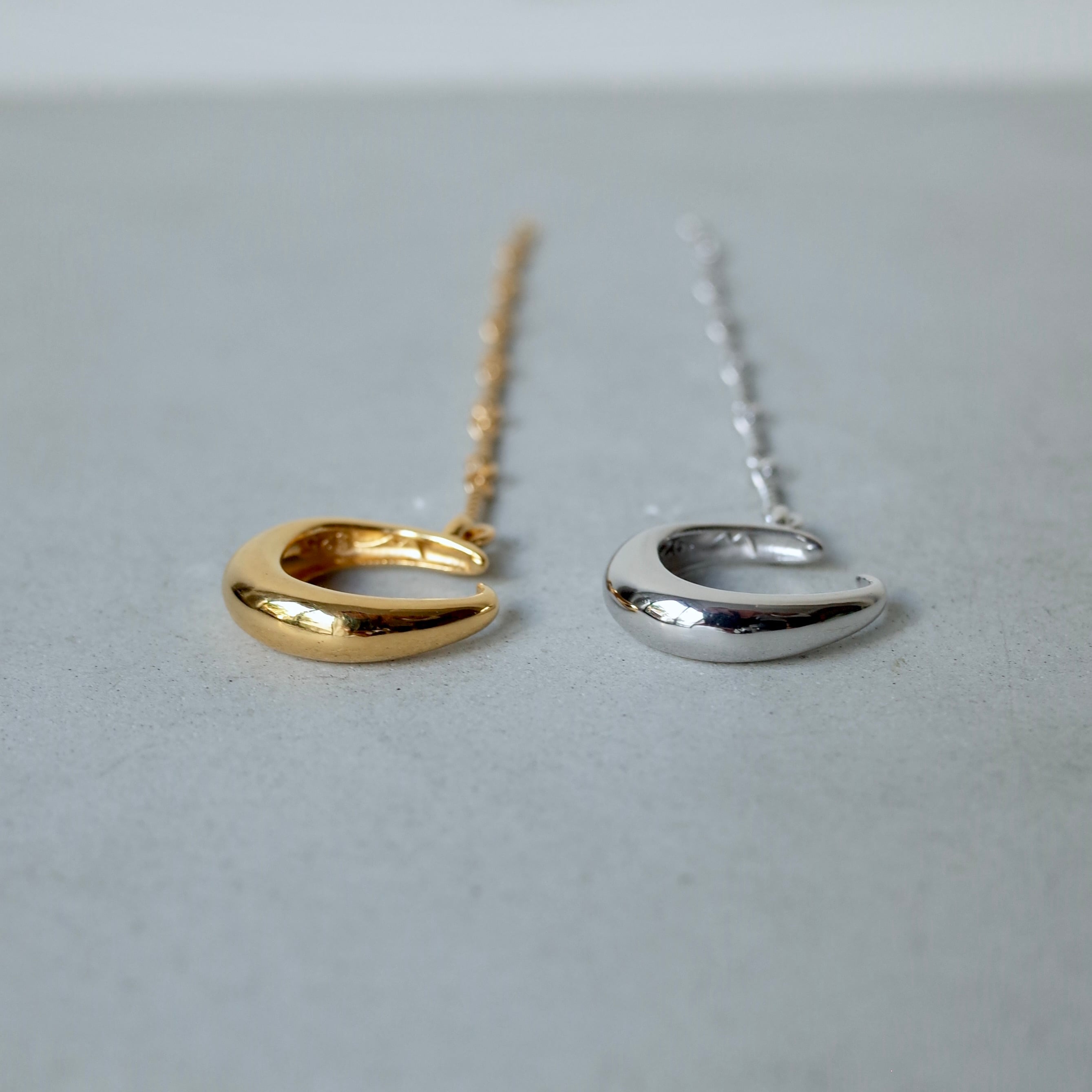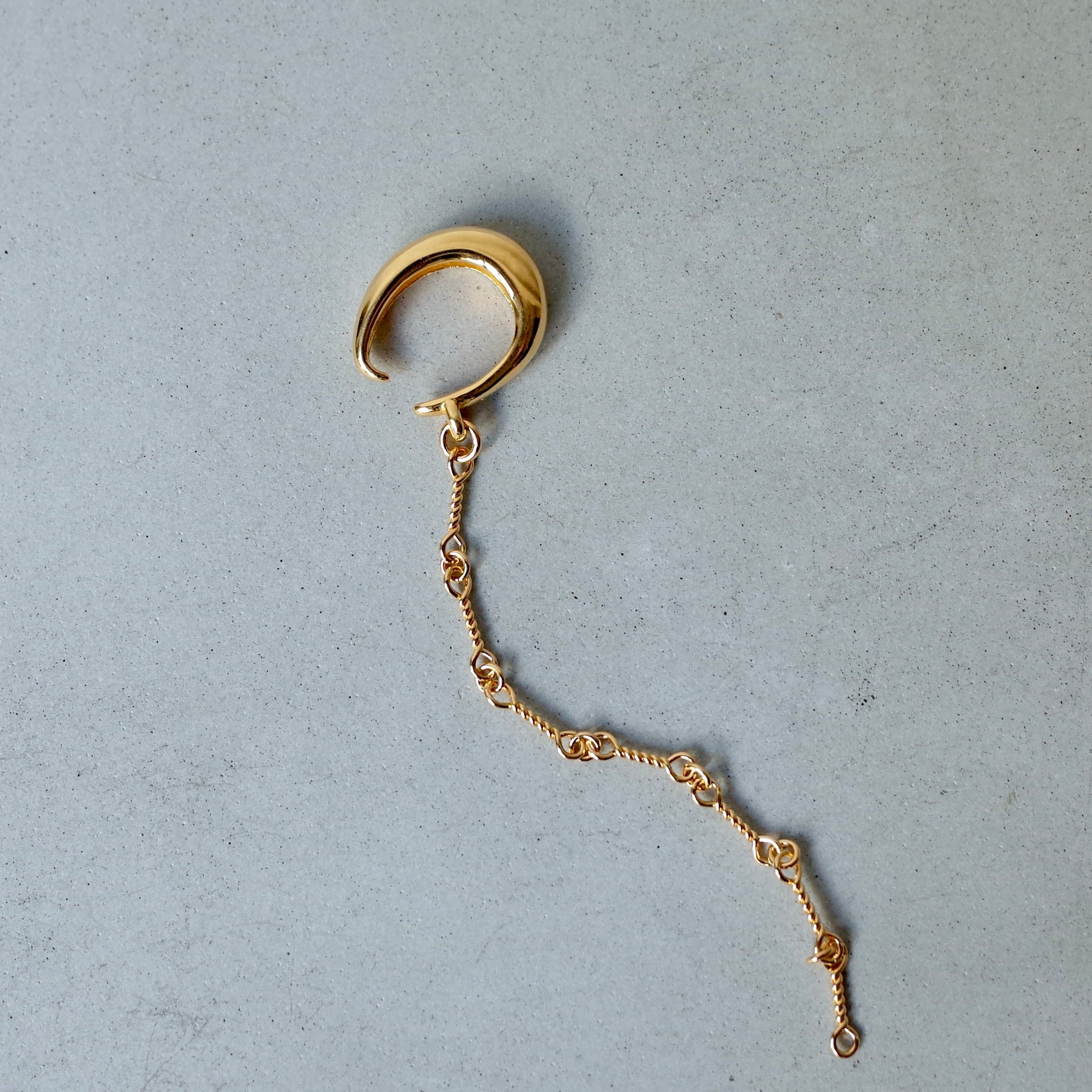 コーディネートしやすいしずく型に後部から垂れるチェーンが印象的なイヤーカフ。