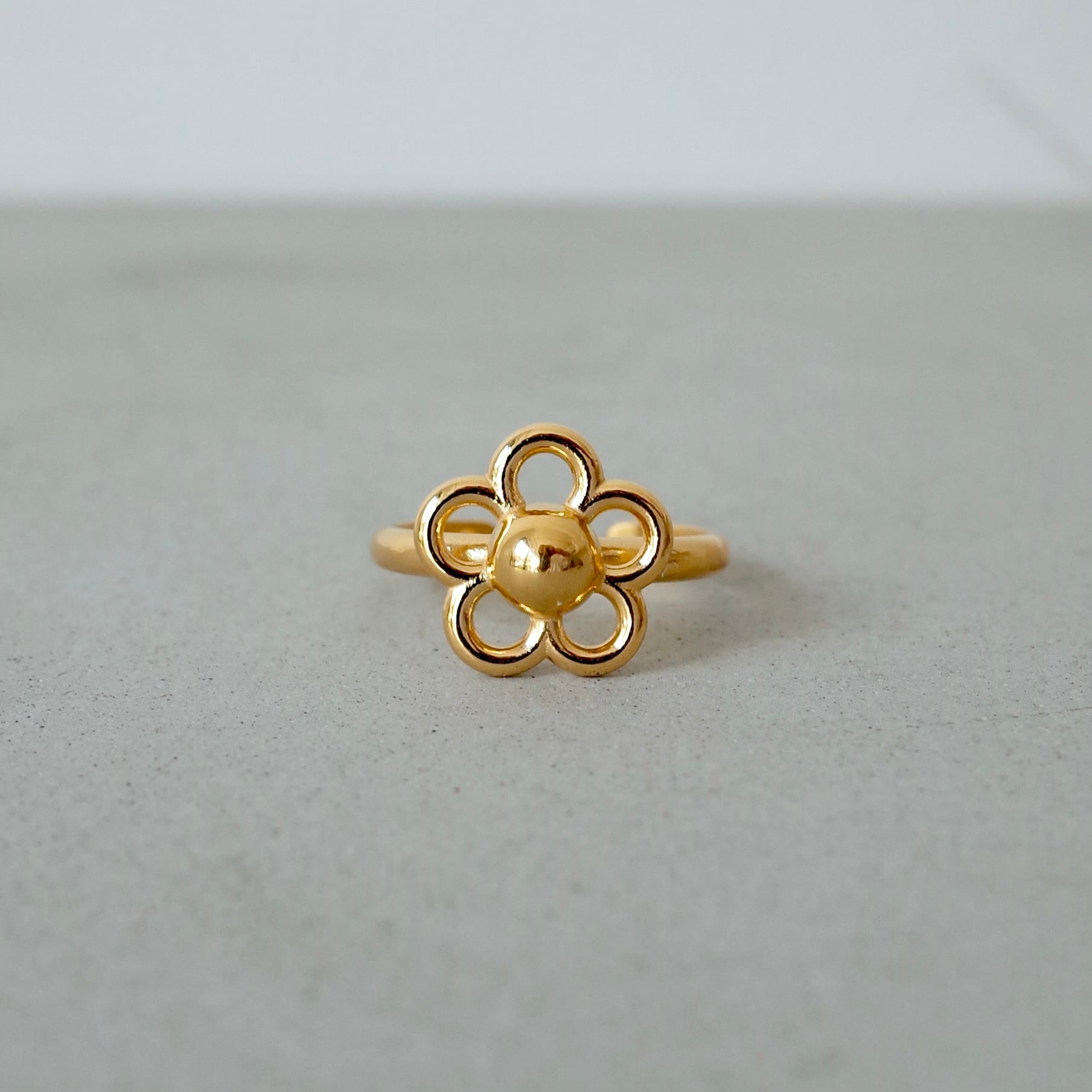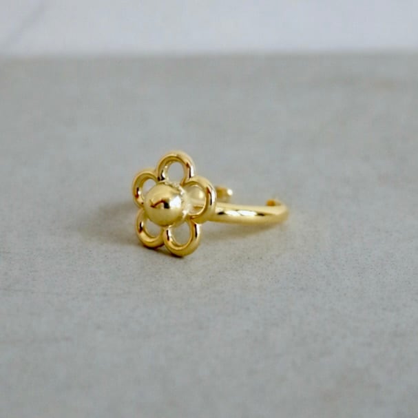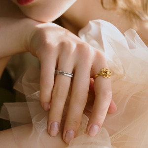 花の形に抜いたモチーフが印象的なリング。