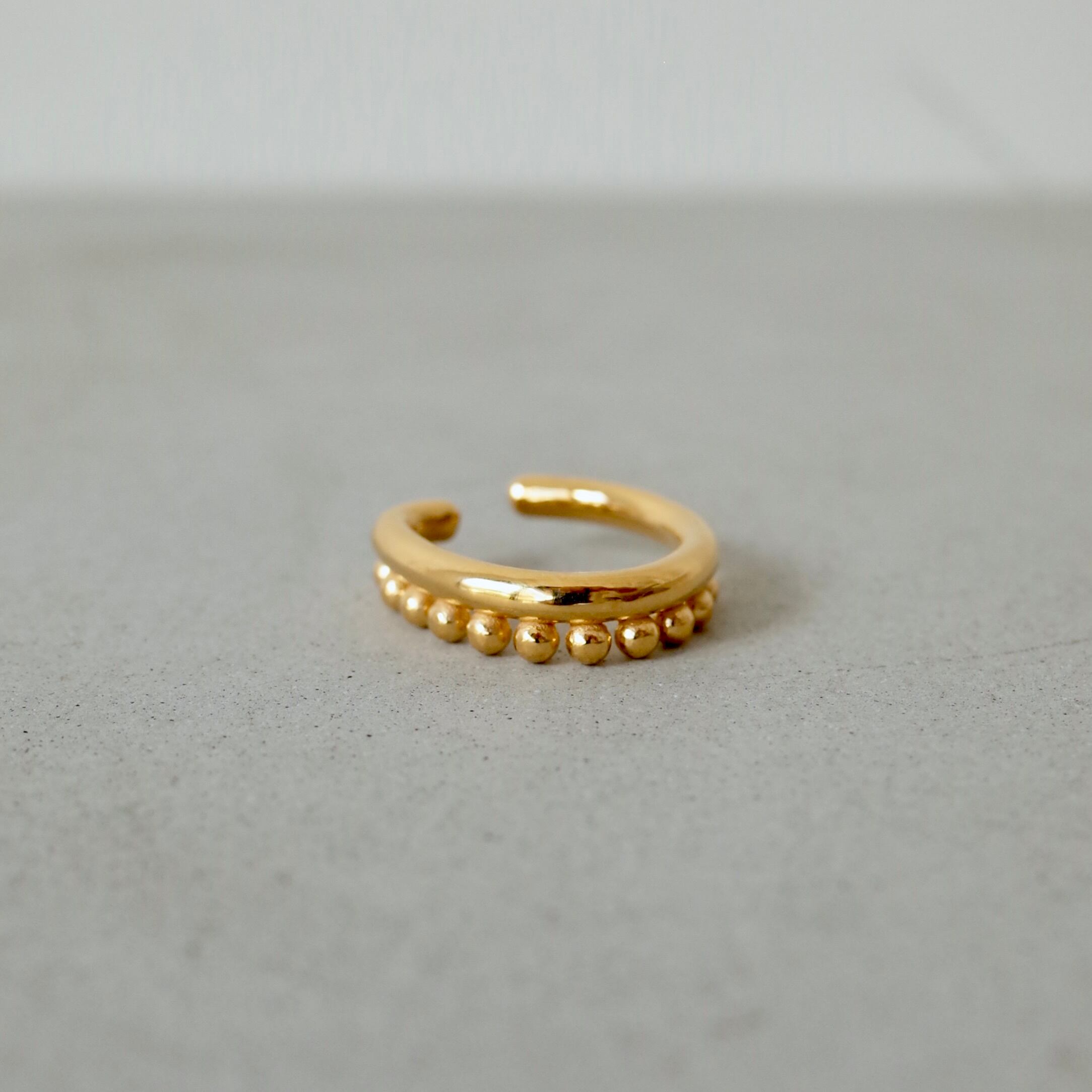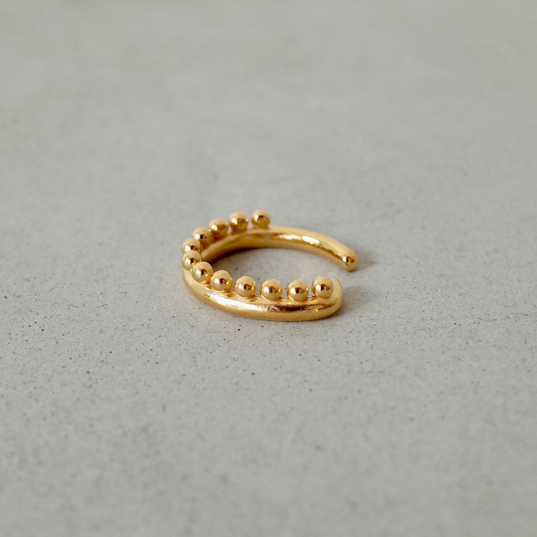 丸い線をベースに、小さな丸い粒を並べたイヤーカフ。