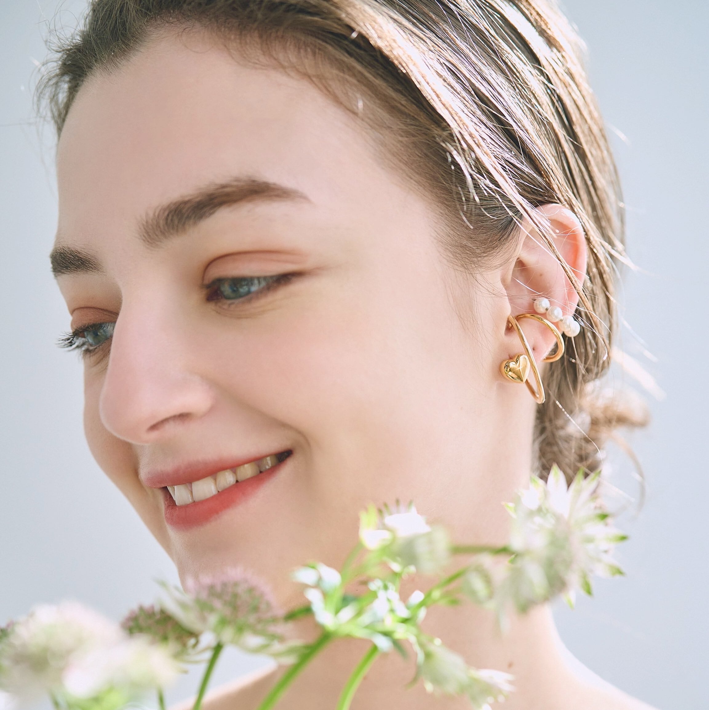 4粒のパールがついた華やかなデザインのイヤーカフ。