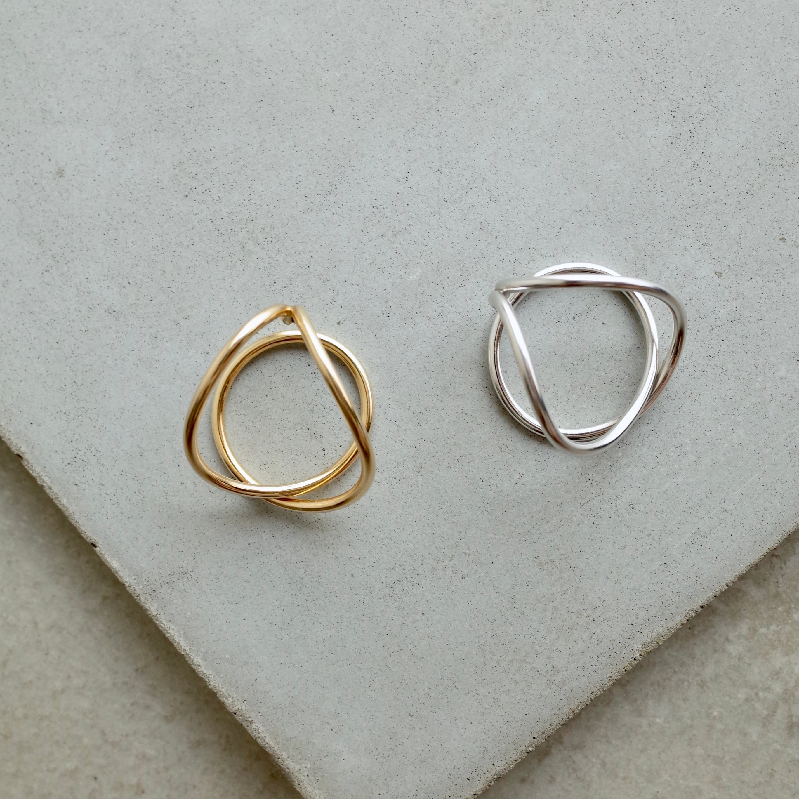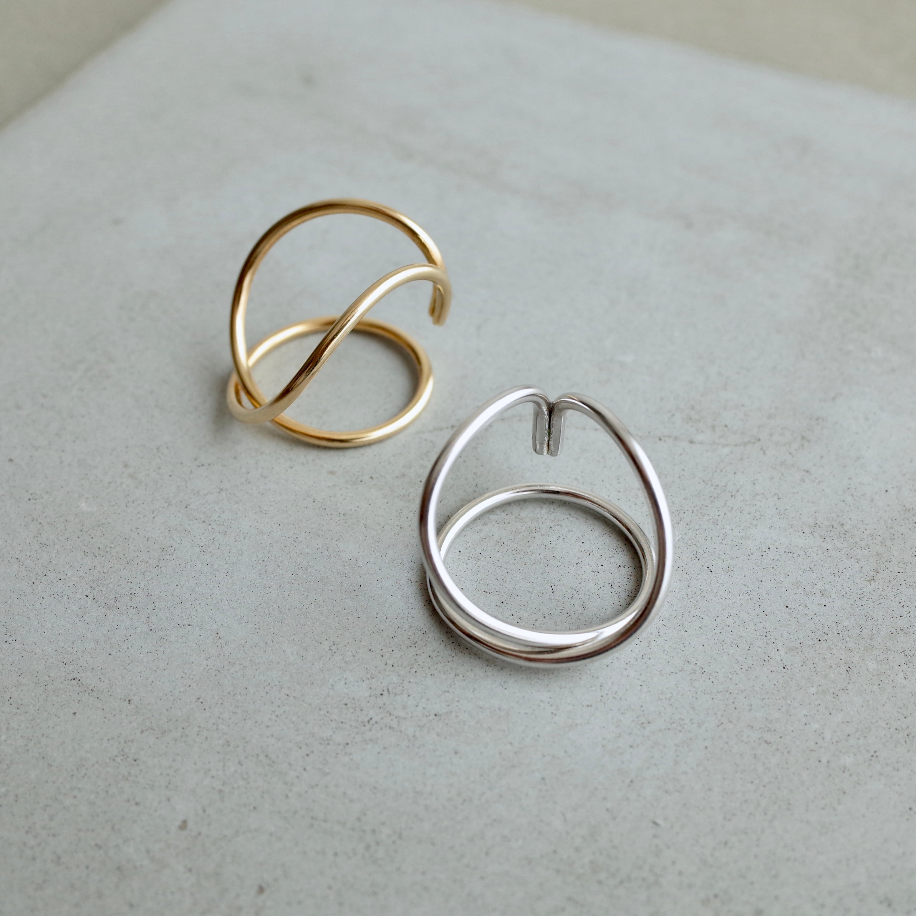 ラインの太さにこだわりながら大きめにデザインし、見る方向や着ける耳によって印象が変わるのが特徴のイヤーカフです。