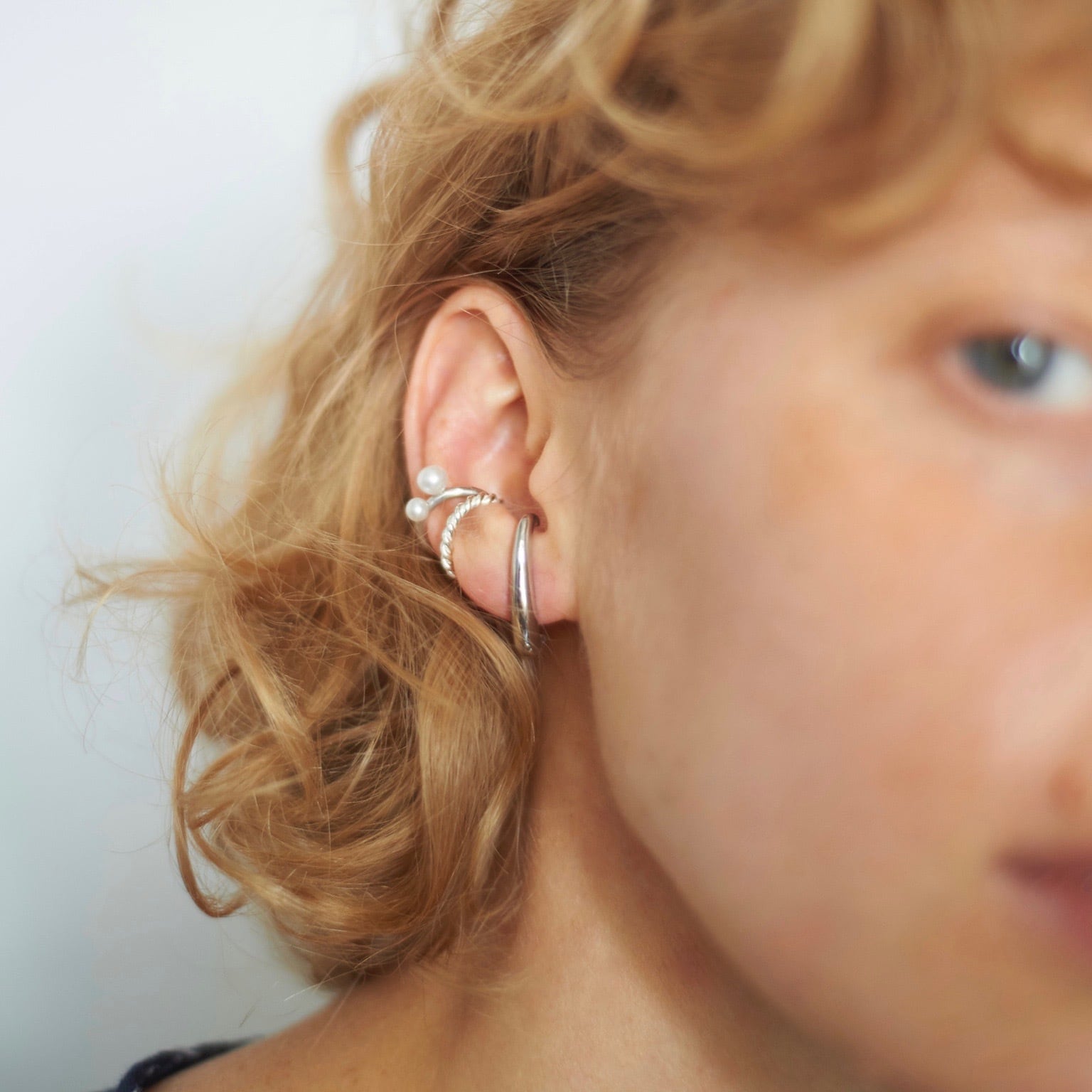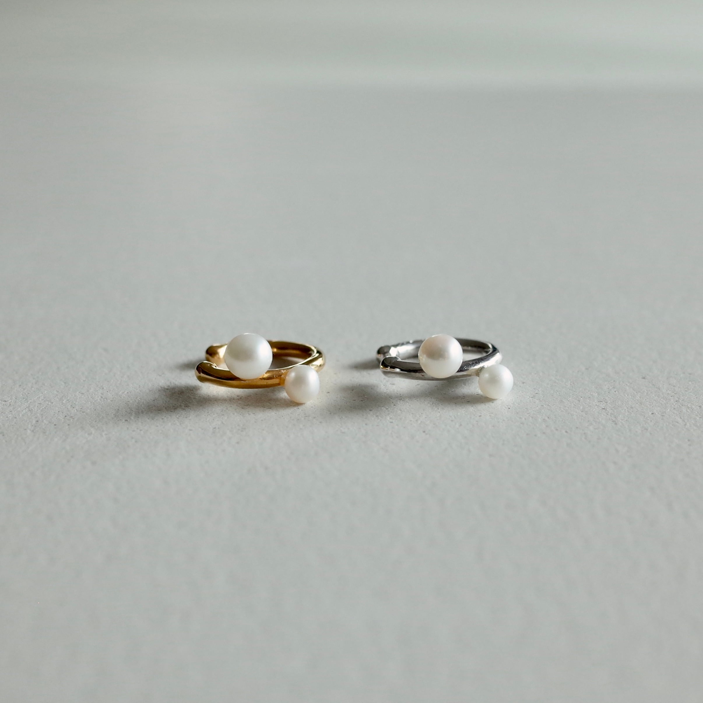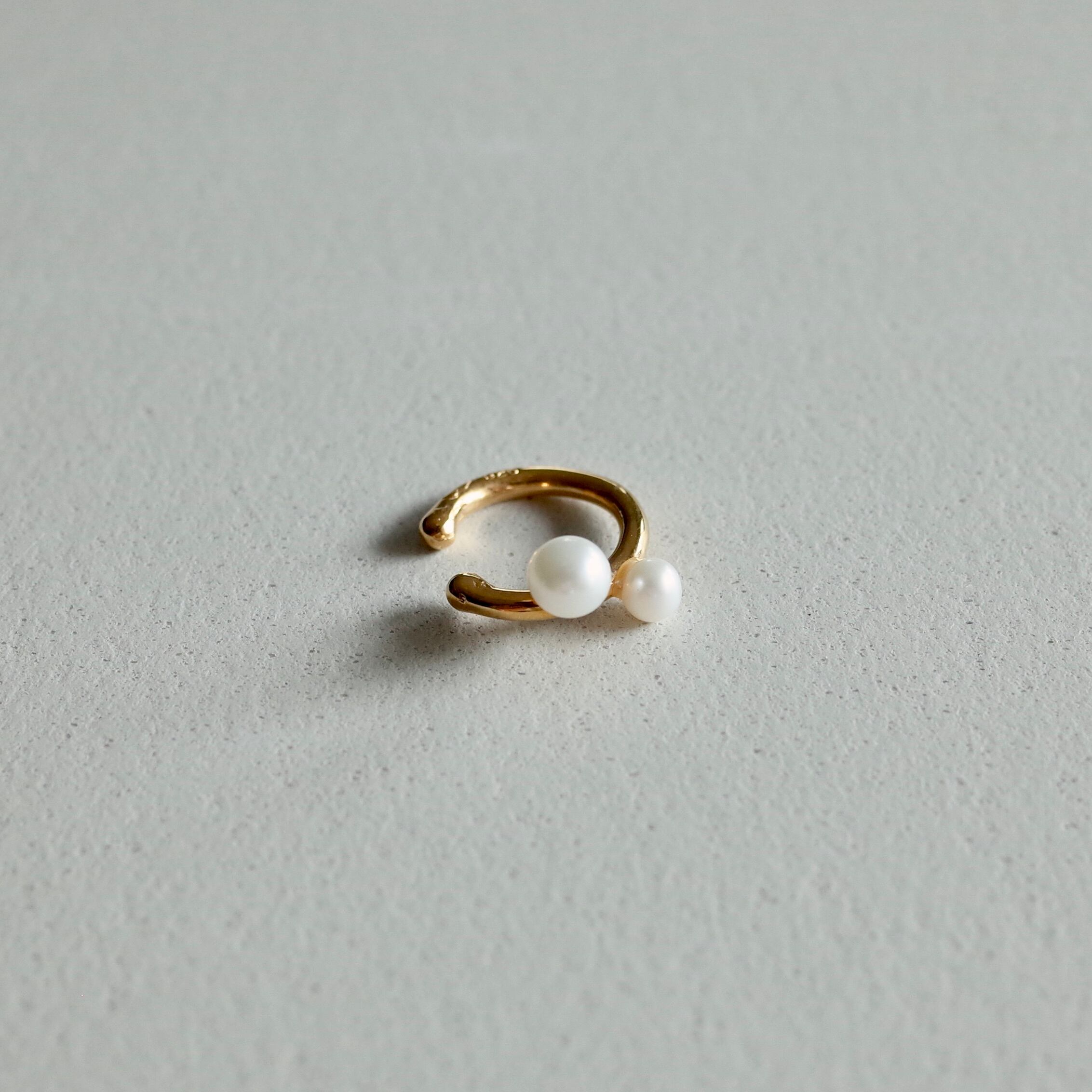 小ぶりで不揃いなパールが2つ付いたイヤーカフ。