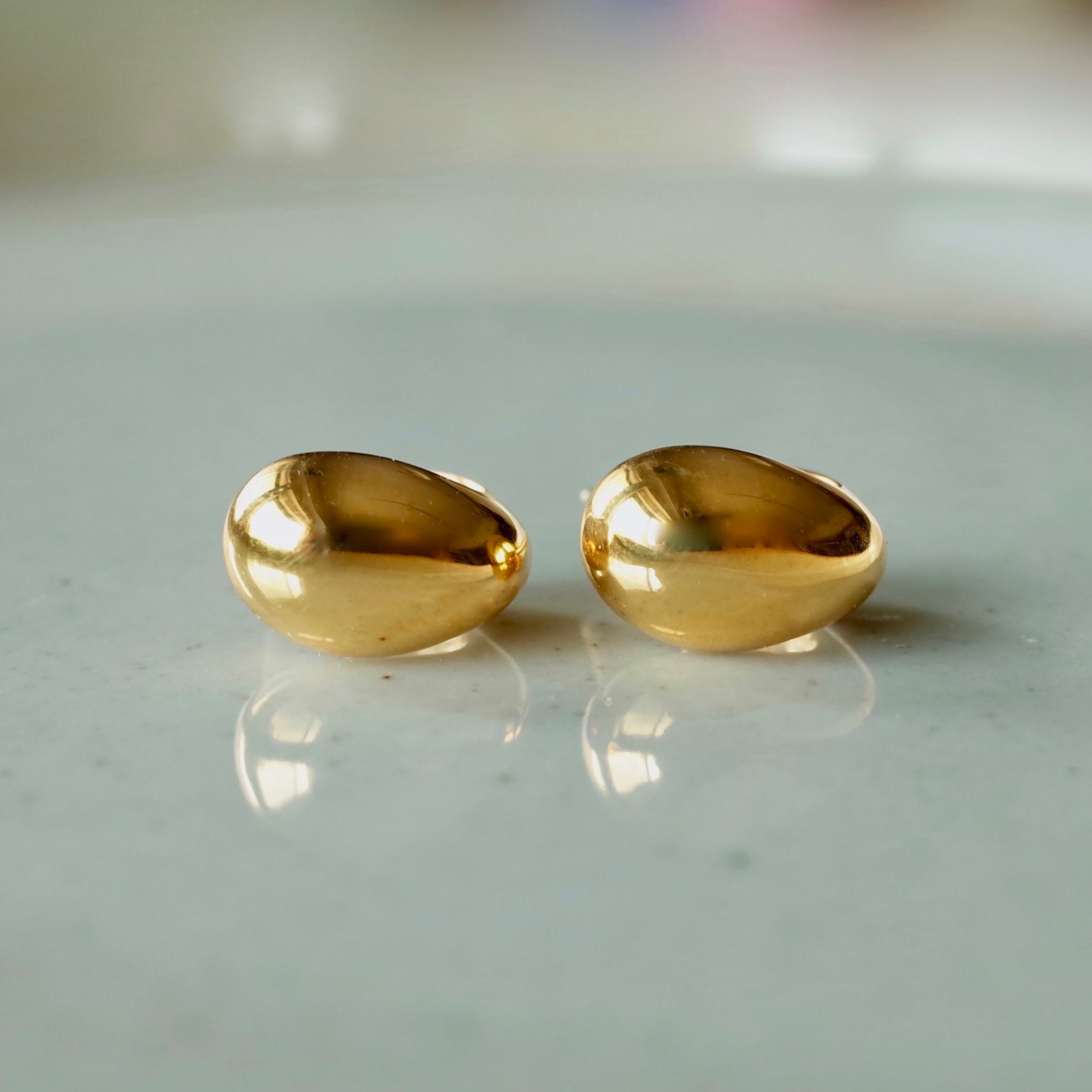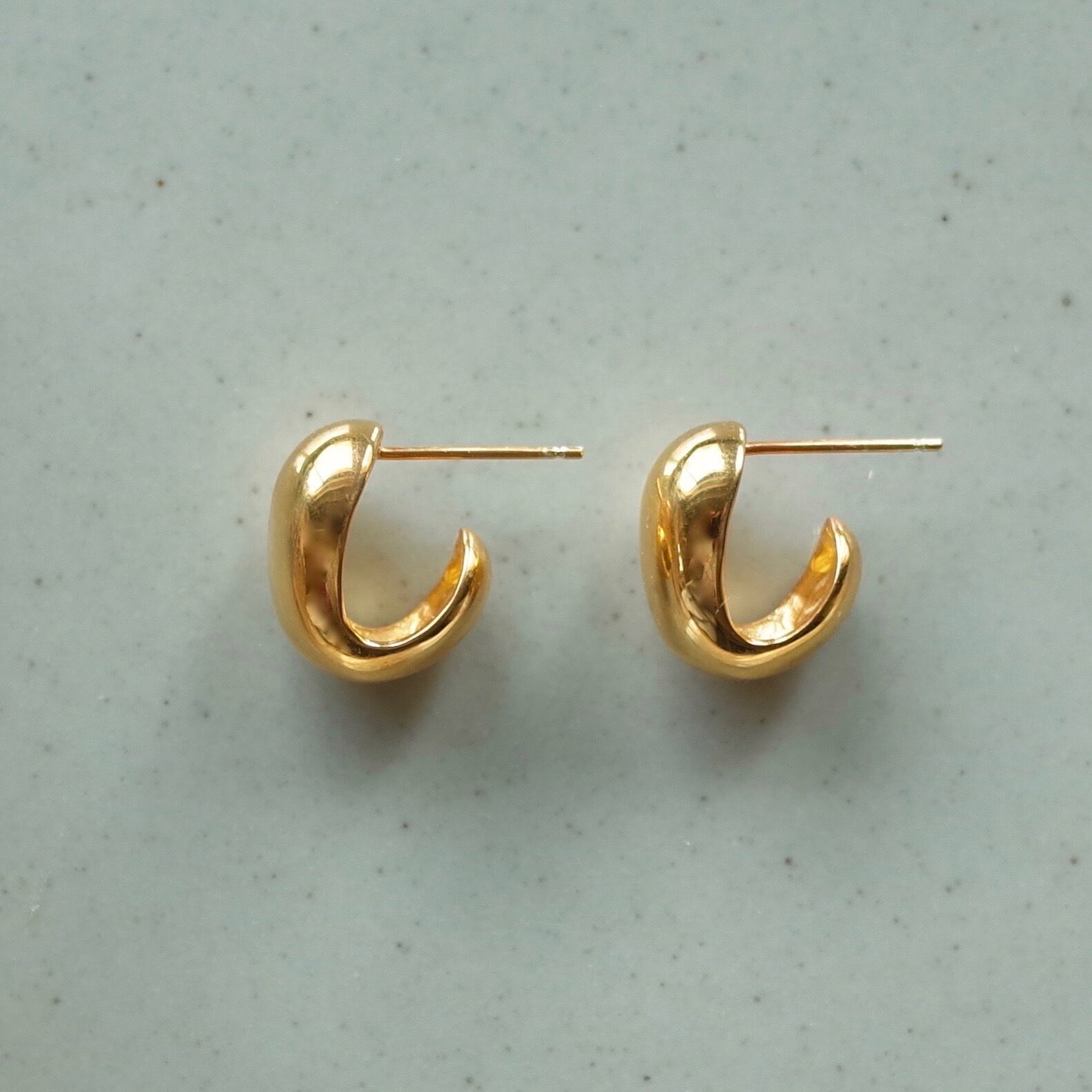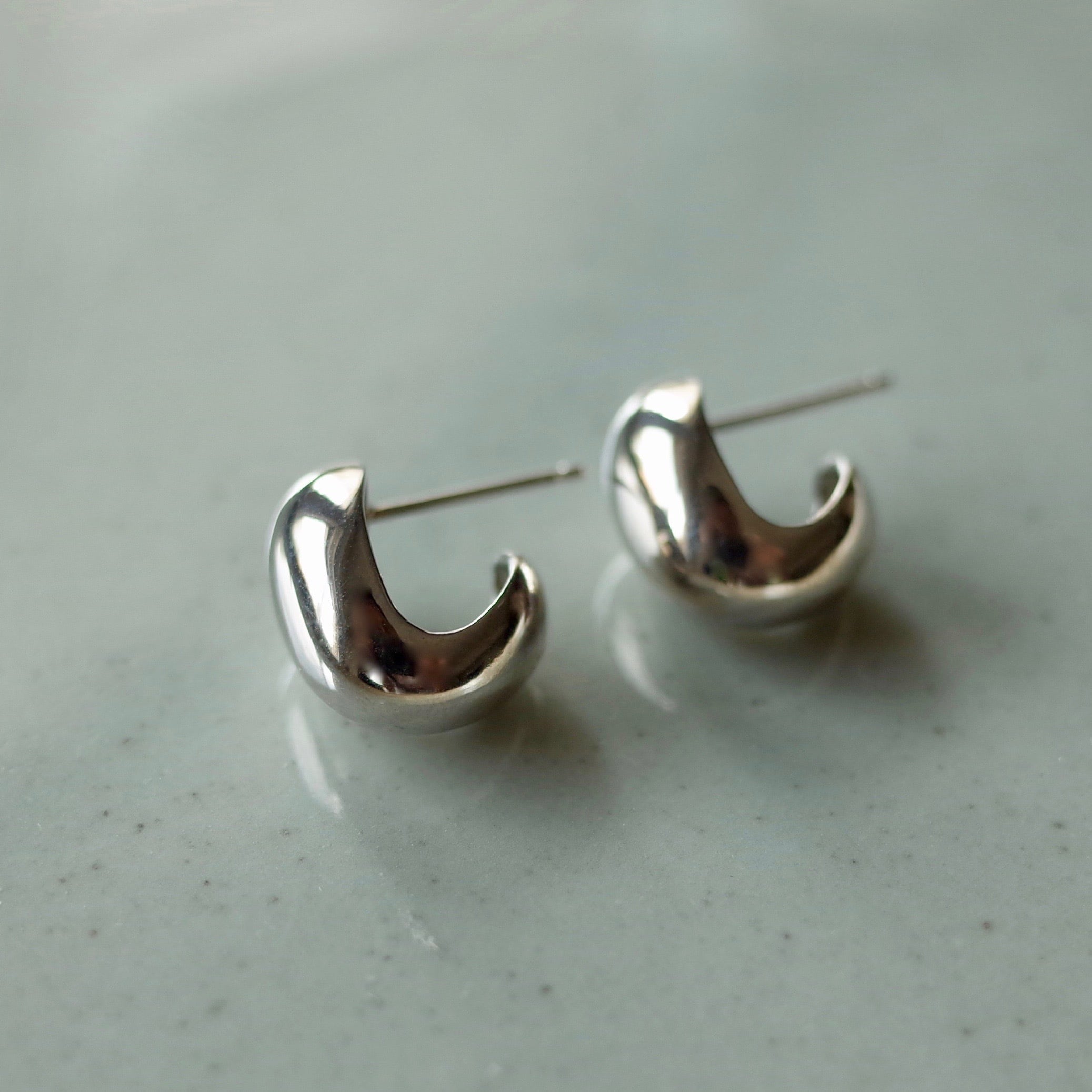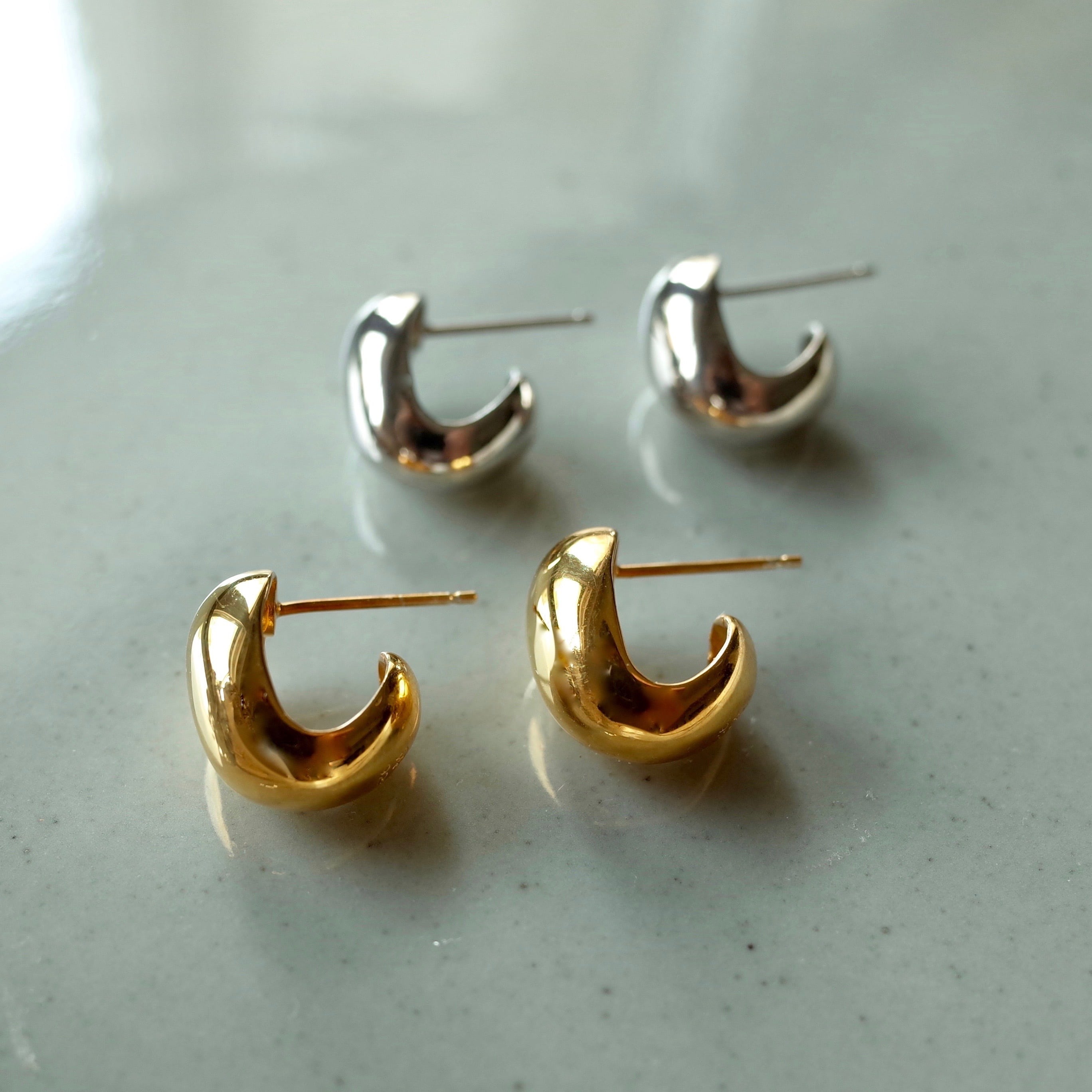 The earrings feature a rounded silhouette with just the right volume and plumpness, a simple yet unique design. They are carefully polished to a luster to accentuate their elegance. These earrings are a point of interest for your ears.
