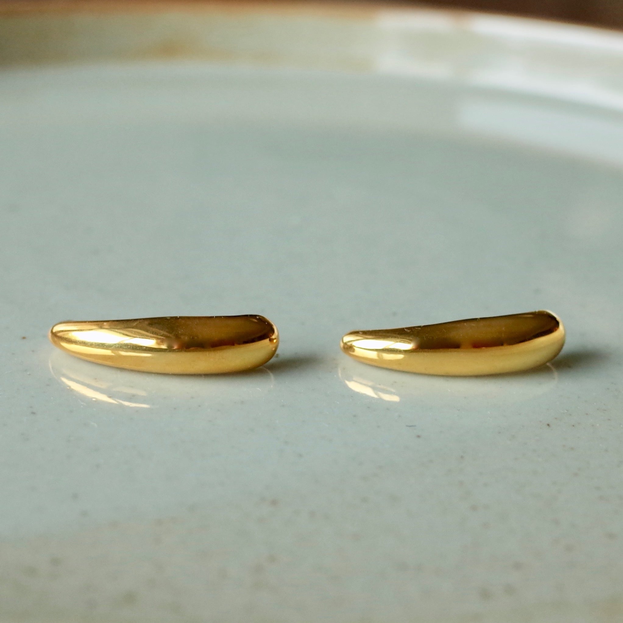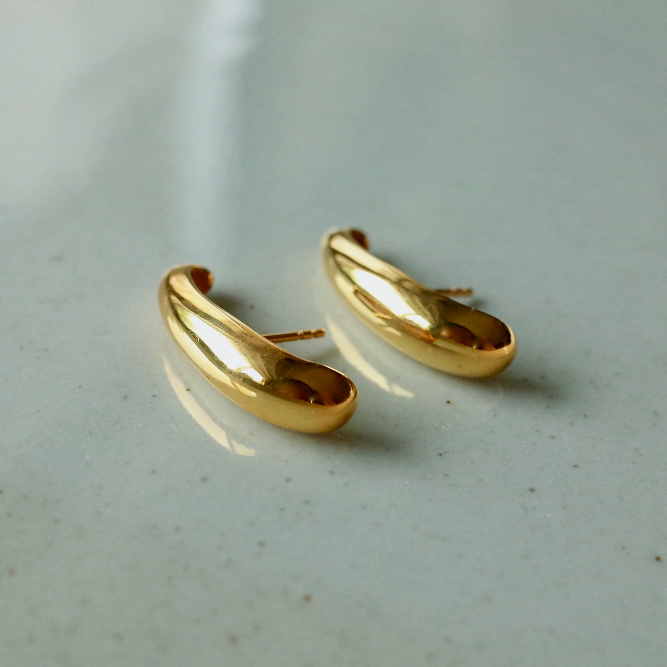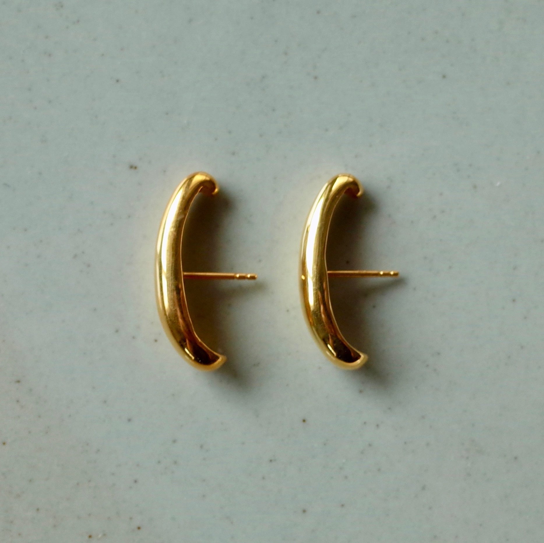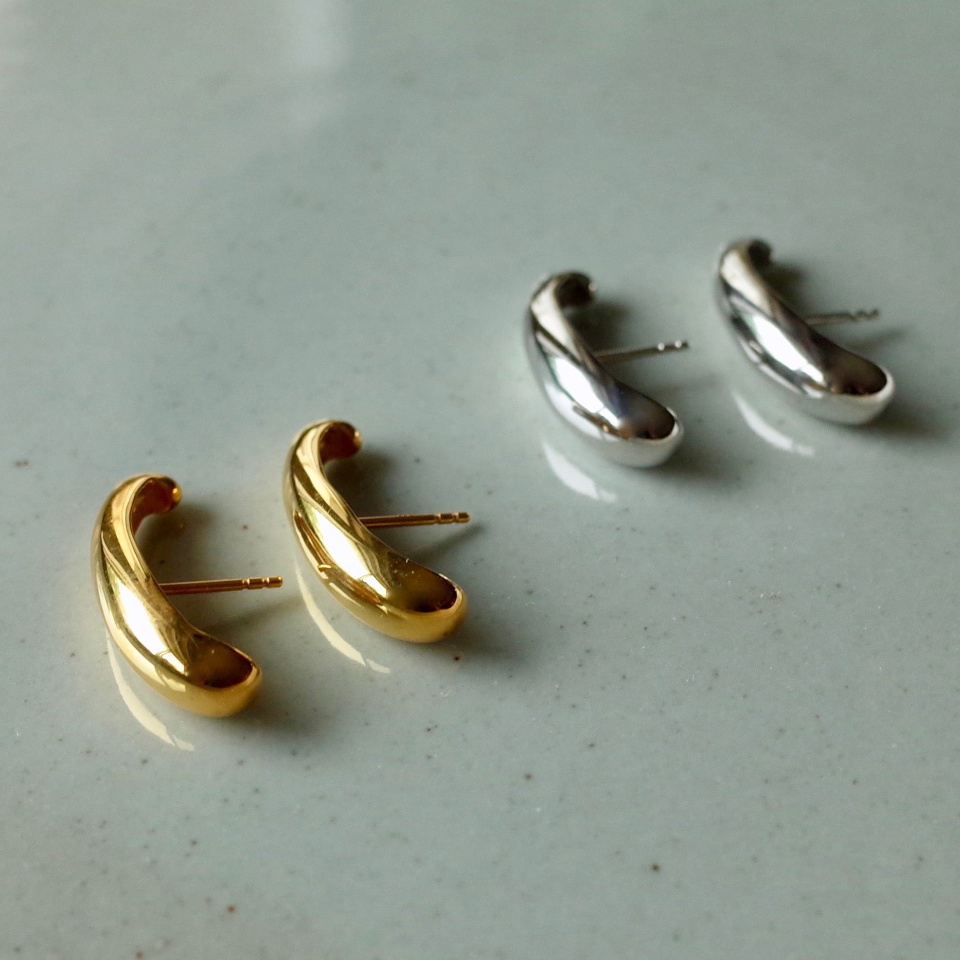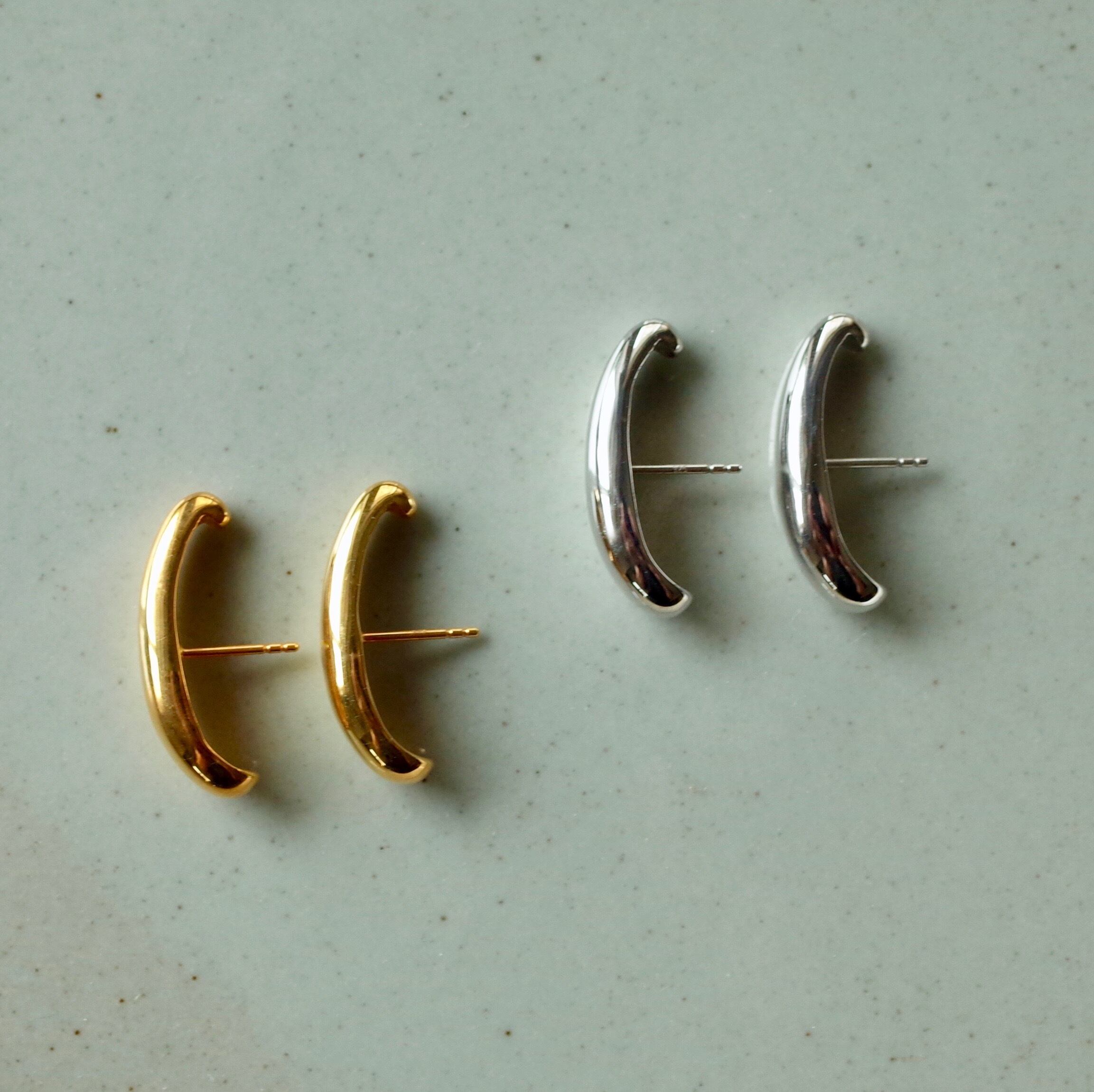 These earrings feature a beautiful curve with a supple arc. The unique drop-shaped silhouette looks as if it is hooked onto an inner conch when worn, giving the earrings an ear-cuff feel.