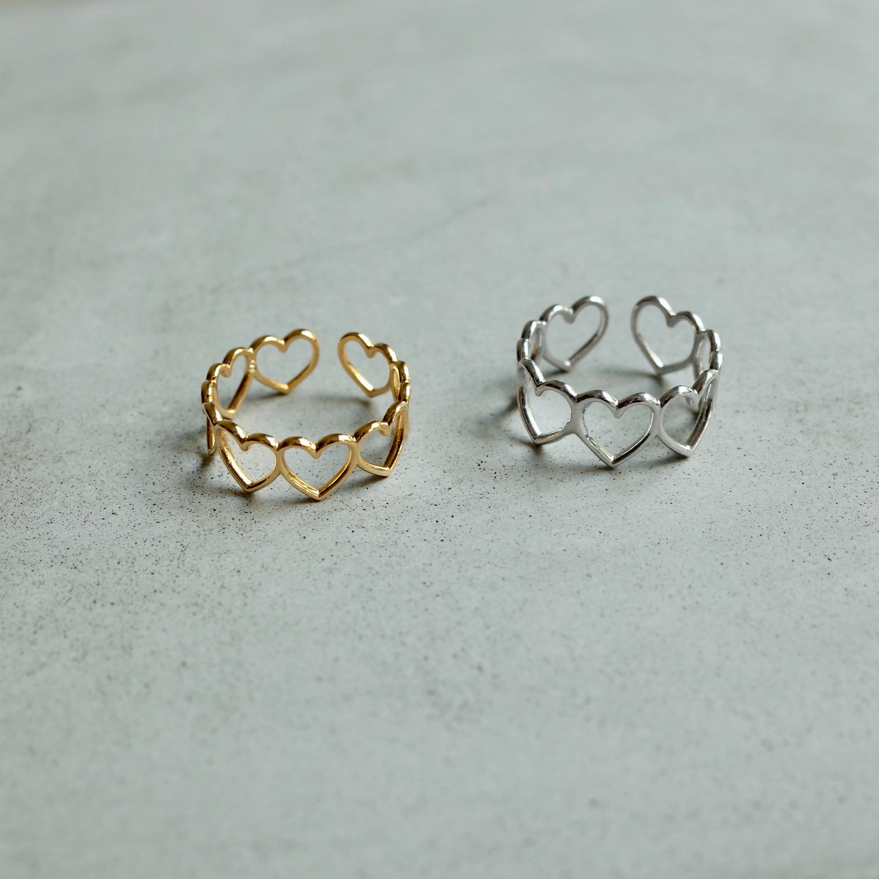 7つのハートが連なったリングは、ポップで可愛らしいアクセサリーです。