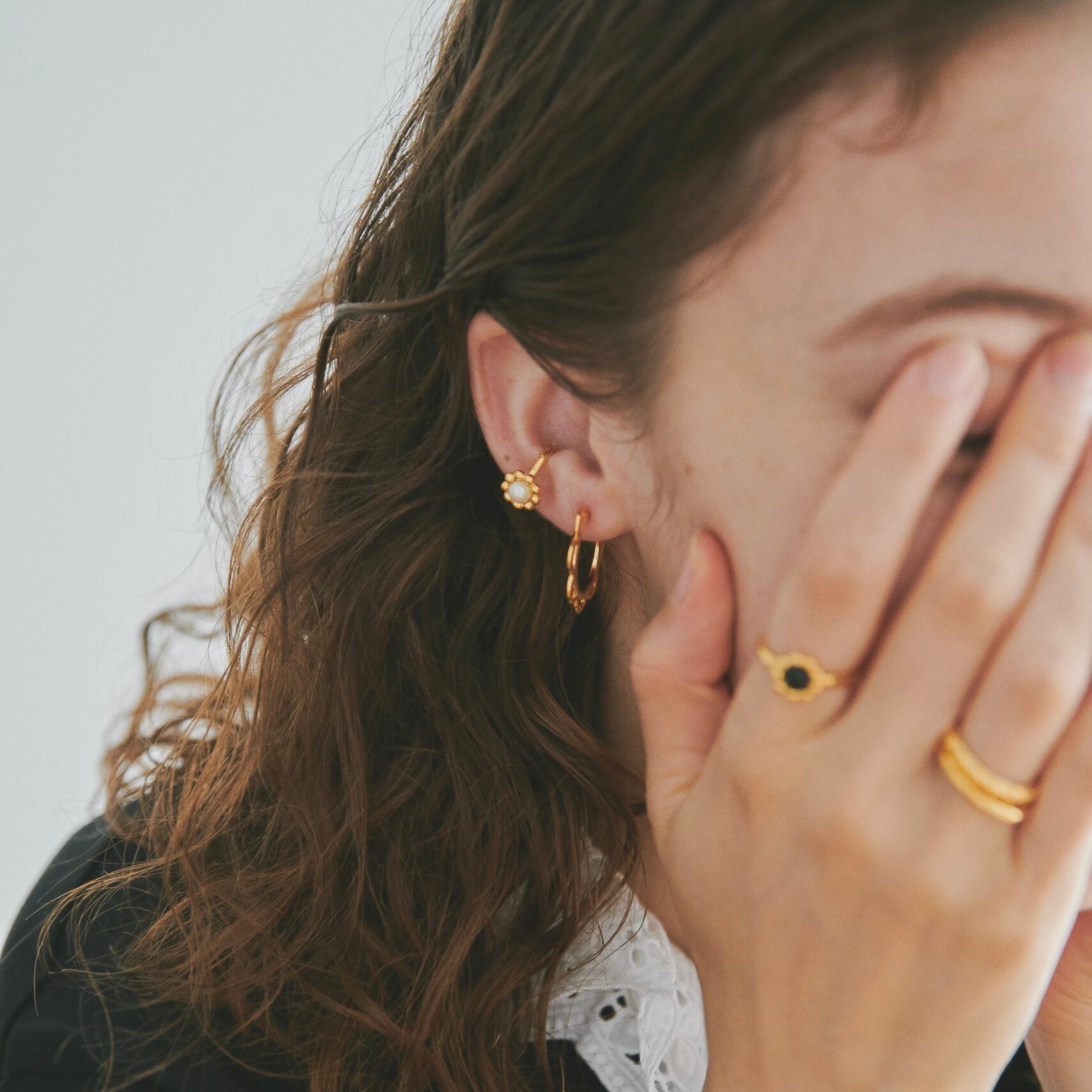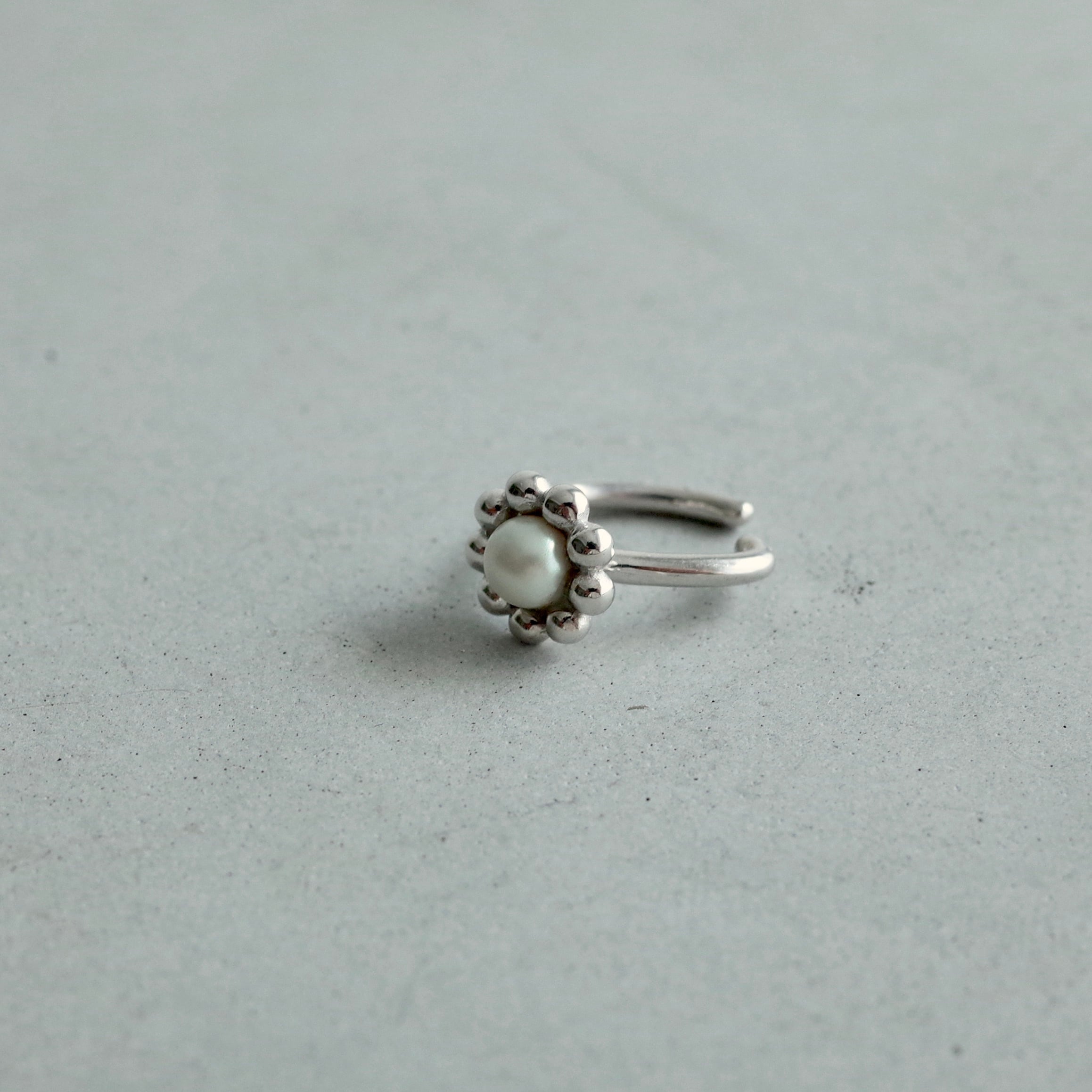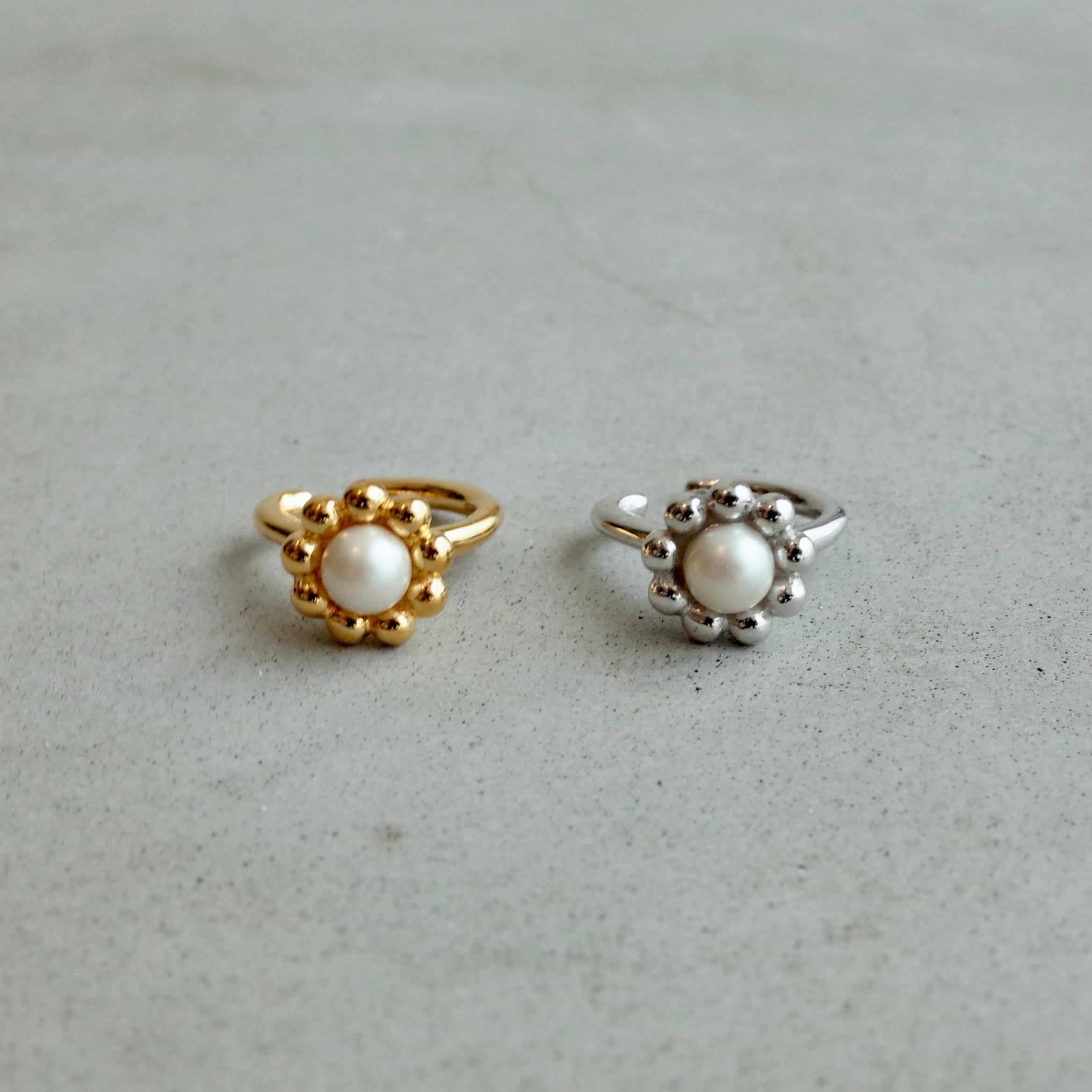 お花モチーフのイヤーカフは、中央にパールがあしらわれており、特別なイベントやオケージョンのファッションにも華やかさをプラスしてくれるアイテムです。