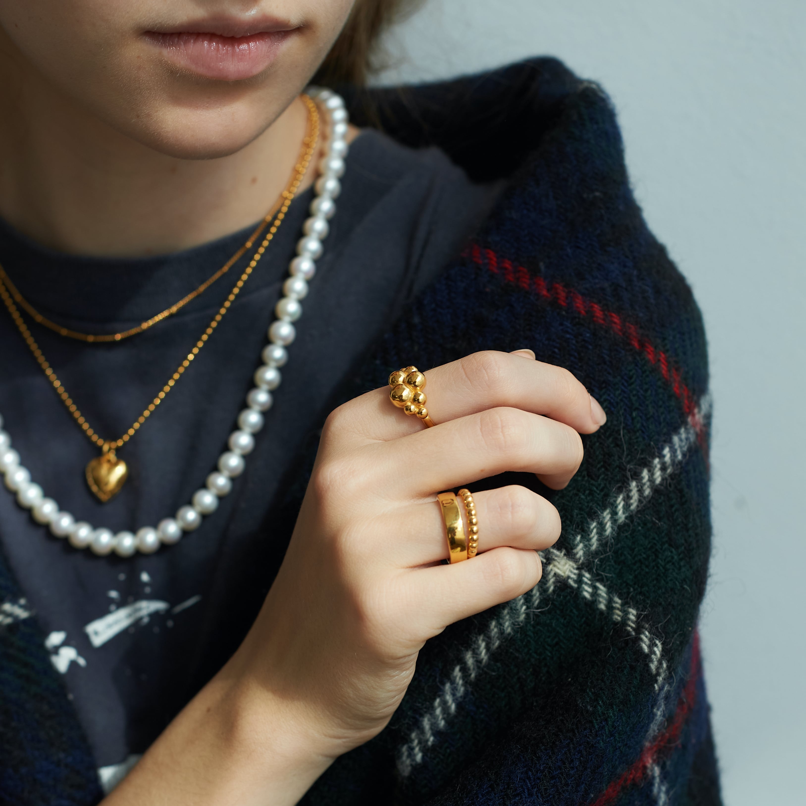一つ一つの玉に光沢があり、華やかで上品、1つ着けでも映える存在感が魅力のアイテムです。