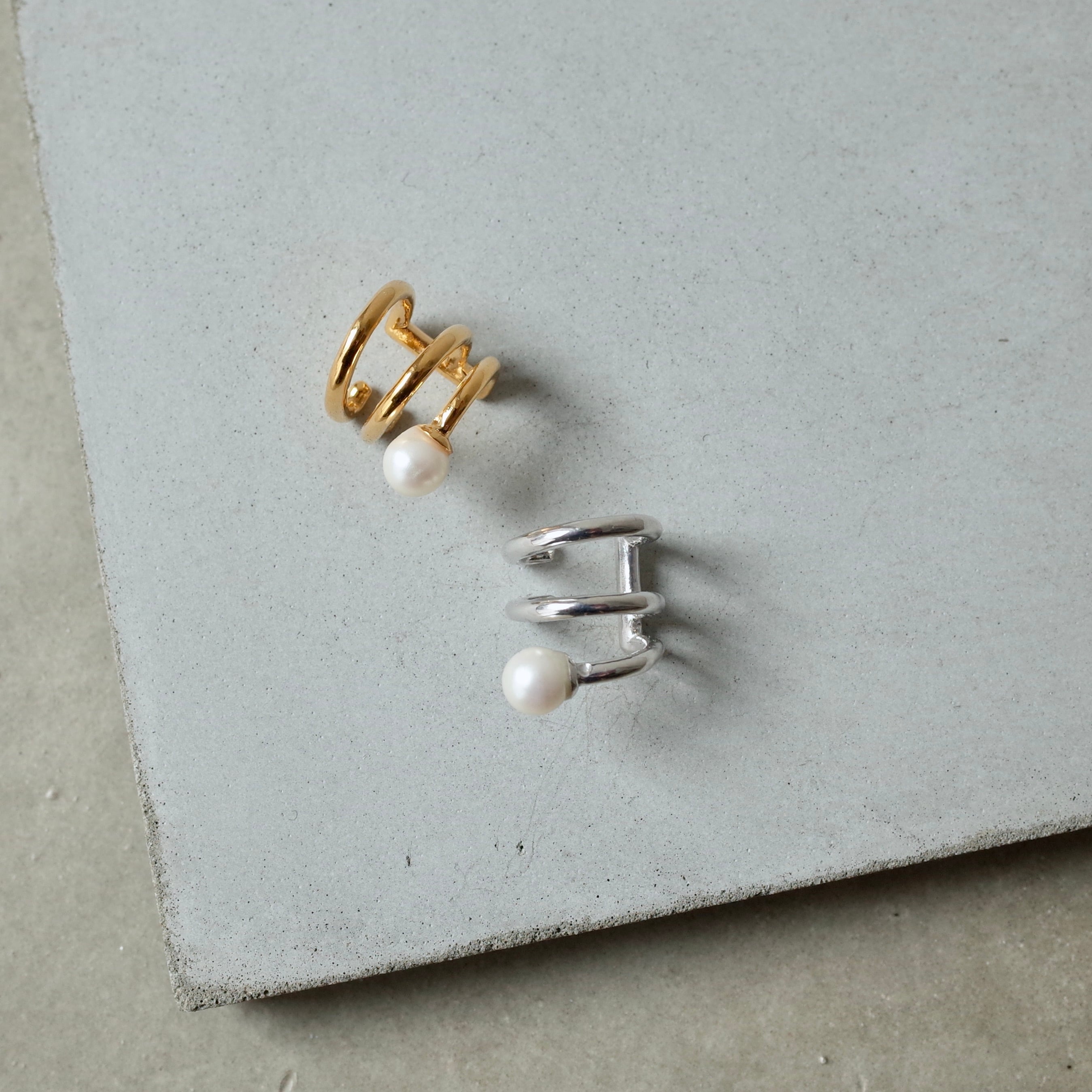 6ミリの大きめのパールが一粒ひょっこりと耳の後ろから現れたようなイヤーカフです。